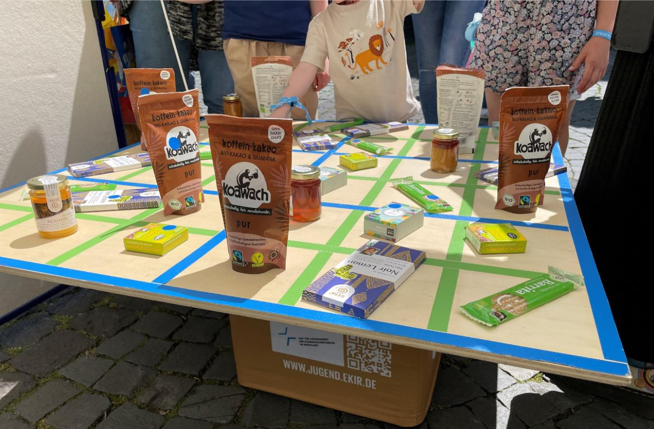 Oder vielleicht suchen Sie noch nach einem spannenden Thema für die nächsten Ferien? Mit den Themen Fairtrade und Nachhaltigkeit lassen sich einige Tage mit spannenden Aktionen, Projekten oder Ausflügen gestalten. Wie wäre es z.B. mit einem Fairen Frühstück, mit Kaffee, Kakao, Banane und Orangensaft aus fairem Handel? Oder einem Fairen Fußballturnier mit fair gehandelten Fußbällen? Oder einem Ausflug in einen nahegelegenen Weltladen oder Supermarkt, lassen Sie die Jugendlichen selbst rechierchieren, welche Produkte mit einem Fairtrade-Siegel sie finden können und anschließend bei einem FAIR-Tasting selbst entscheiden, welcher faire Schokoriegel dauerhaft in der Einrichtung angeboten werden soll.